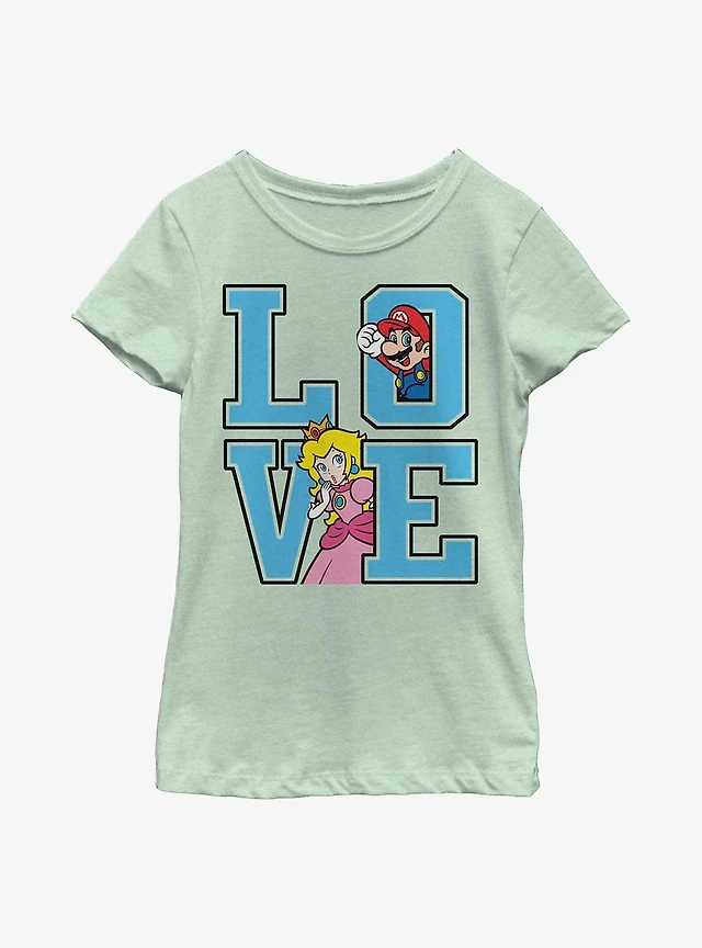 Nintendo Super Mario Love Collegiate Font Youth Girls T-Shirt