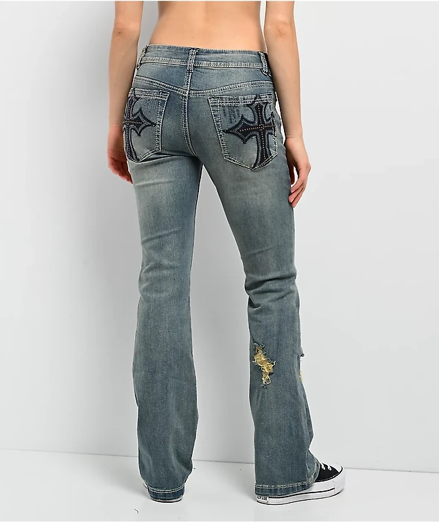 Ninth Hall Astray Ambition Blue Wash Ultra Wide Patchwork Jeans