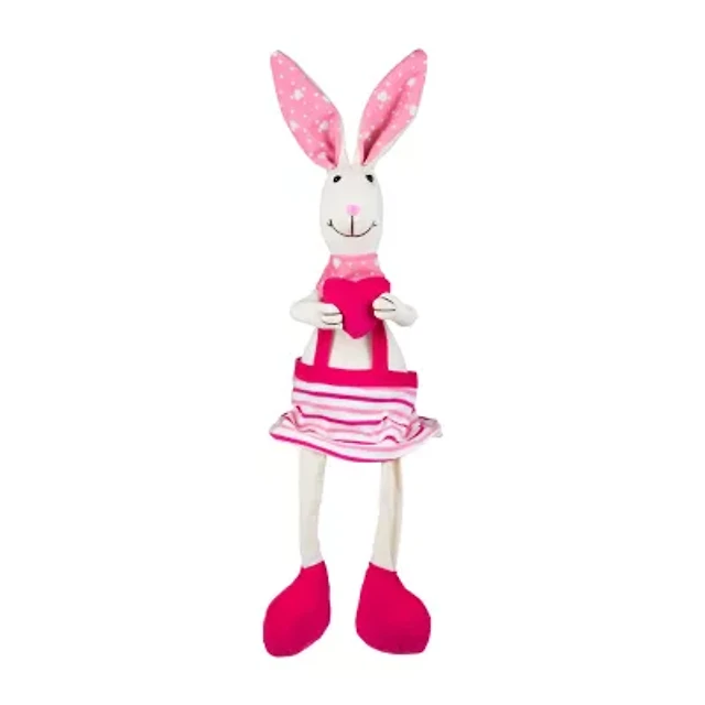 Northlight 17" Cream And Pink Sitting Girl Rabbit With Dangling Legs Easter Tabletop Decor