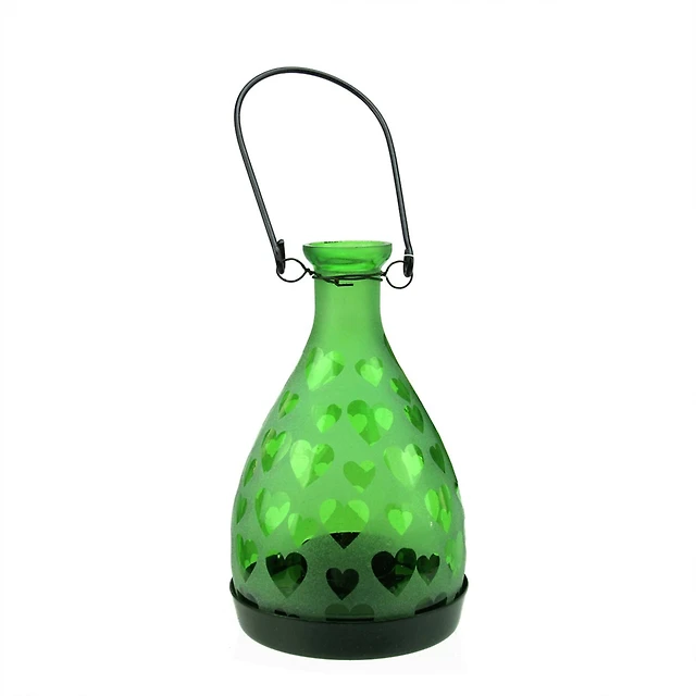 Frosted Hearts Glass Bottle Tea Light Candle Lantern