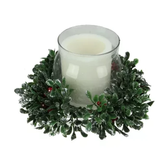 6'' Clear and Green Boxwood with Berry Tipped Christmas Hurricane Pillar Candle Holder