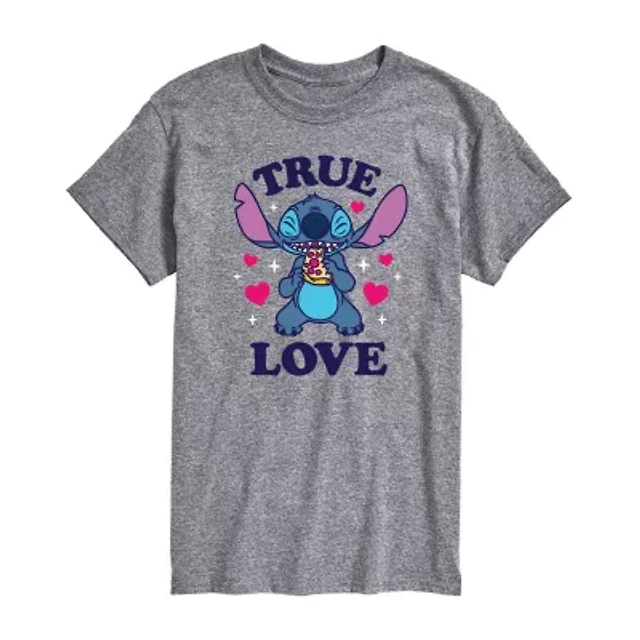 Mens Crew Neck Short Sleeve Lilo & Stitch Valentine's Day T-Shirt