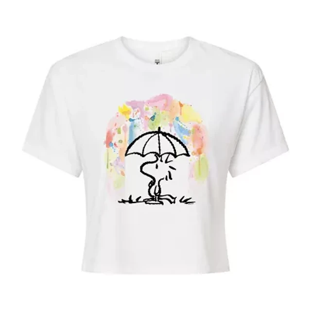 Umbrella Woodstock Cropped Tee Womens Juniors Crew Neck Long Sleeve Regular Fit Peanuts Graphic T-Shirt