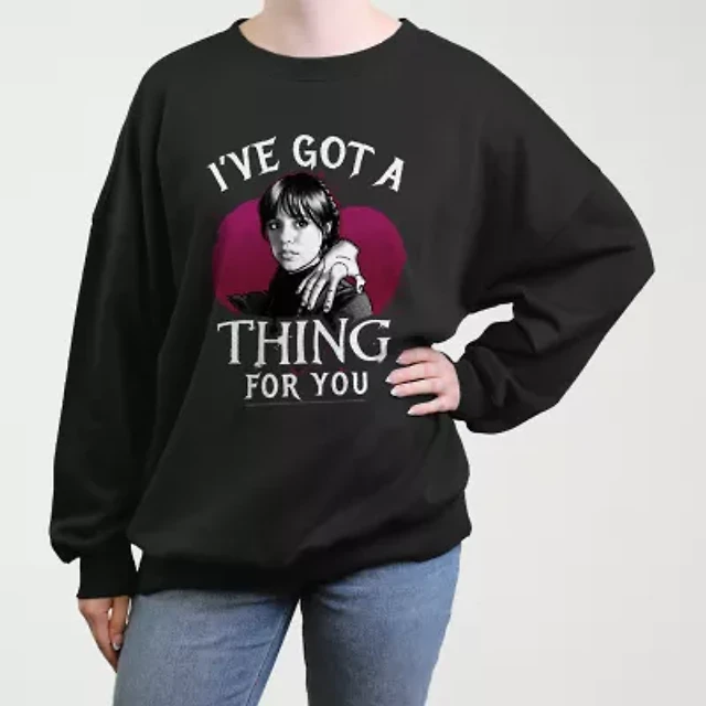 Wednesday I'Ve Got A Thing For You Womens Juniors Crew Neck Long Sleeve Sweatshirt