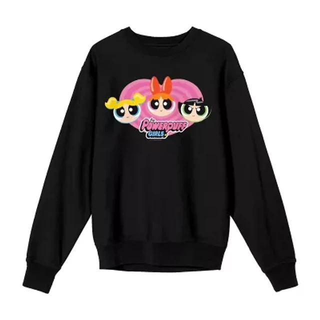 Womens Juniors Crew Neck Long Sleeve Powerpuff Girls Sweatshirt