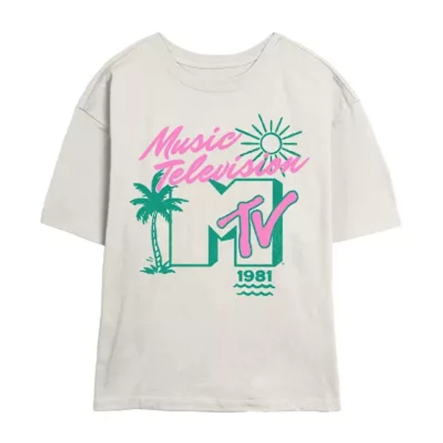 Mtv Tee Womens Juniors Crew Neck Short Sleeve Regular Fit Graphic T-Shirt