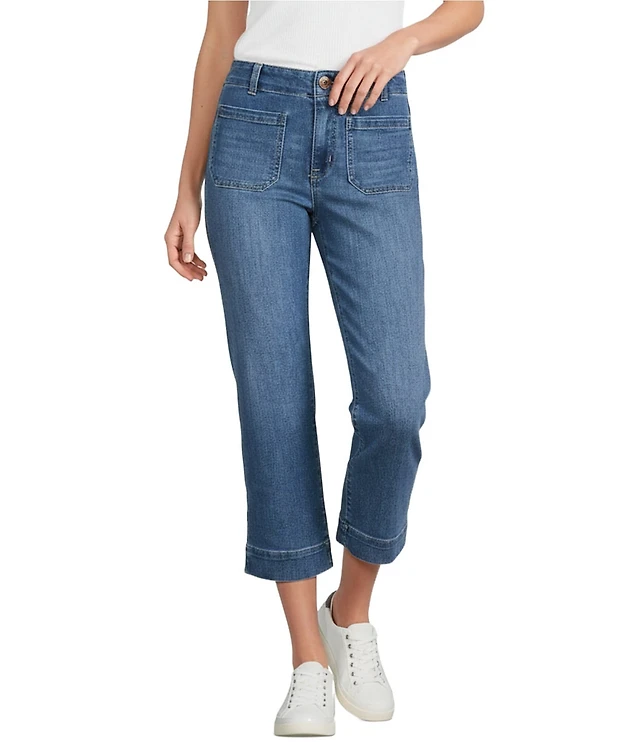 Nurture Slub Stretch Denim High Rise Cropped Straight Leg Pants