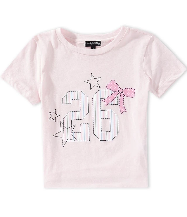 Originality Big Girls Short Sleeve Graphic Stamps T-Shirt