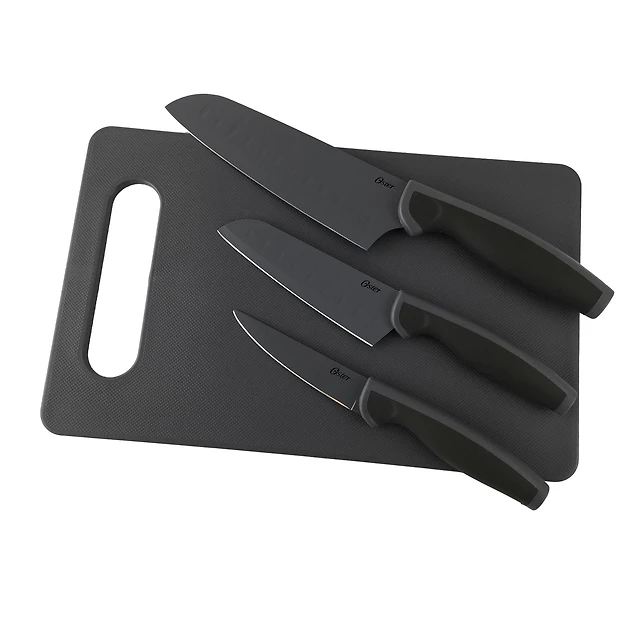 Oster Slice Craft 4-Piece Black Cutlery Knife Set with Cutting Board
