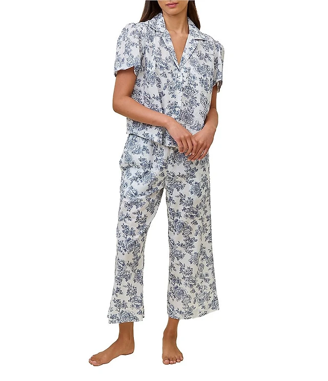 Papinelle Short Sleeve Notch Collar Woven Floral Print Cropped Pajama Set