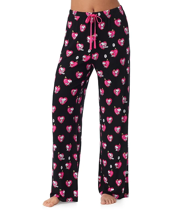 Peanuts Plus Size Jersey Knit Snoopy Heart Print Coordinating Valentine's Day Sleep Pants