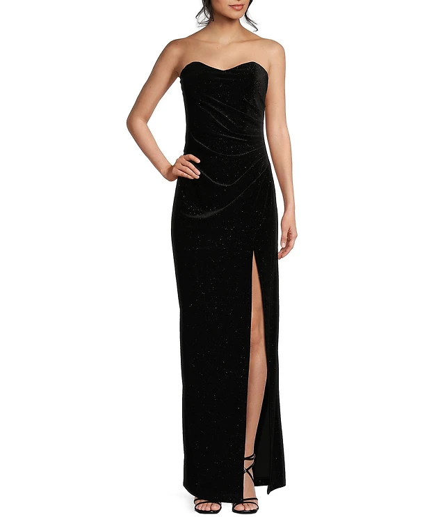 Pear Culture Glitter Sweetheart Neck Strapless Faux-Wrap Side Slit Gown