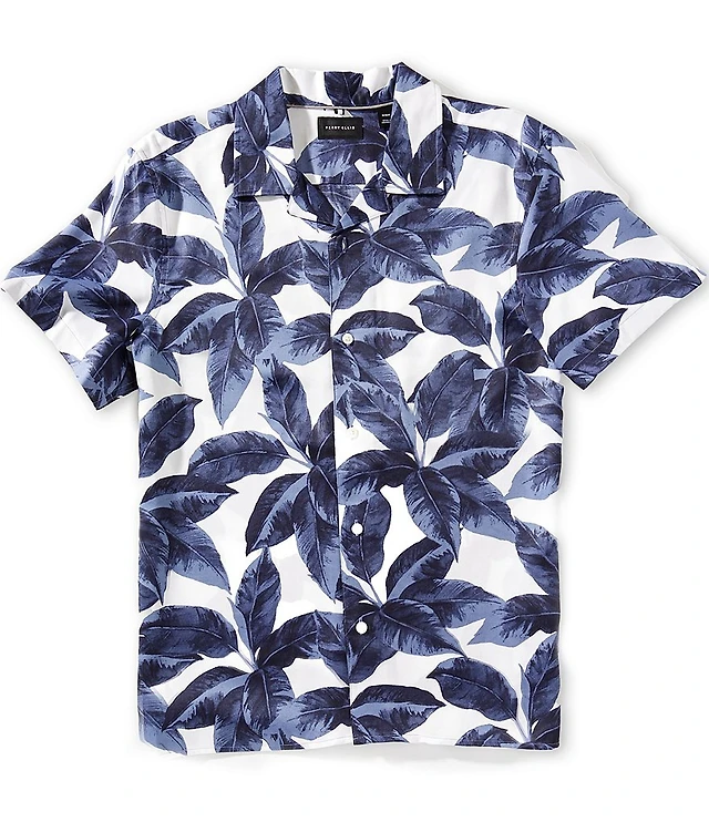 Perry Ellis Tropical Floral Print Short Sleeve Woven Shirt