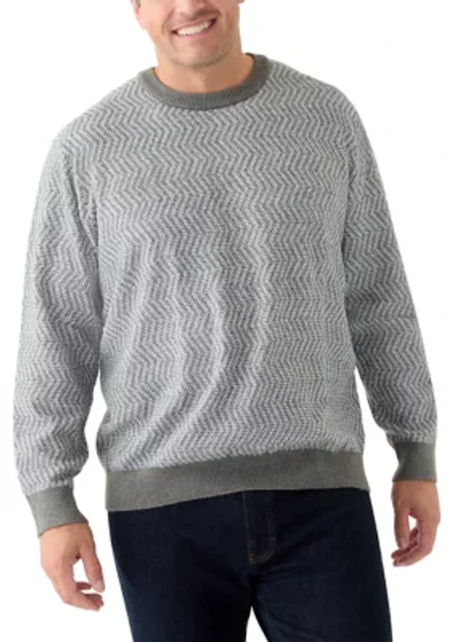 Big & Tall Long Sleeve Yarn and Herringbone Mix Crew Neck Pullover