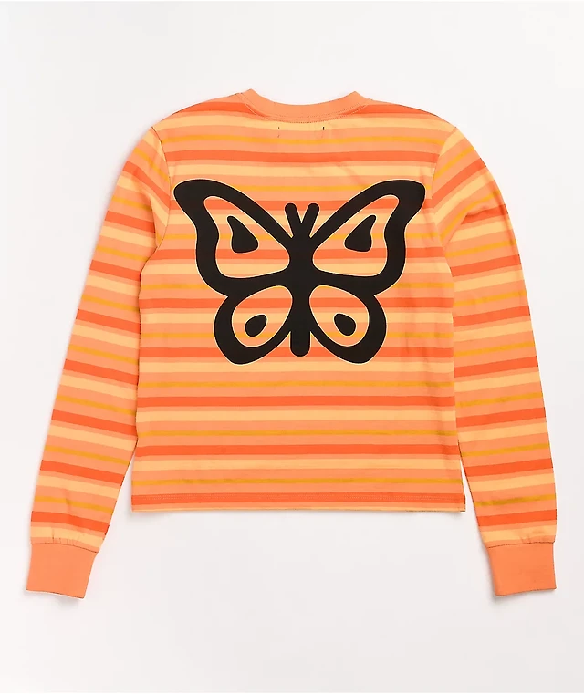 Petals by and Peacocks Monarch Orange Stripe Long Sleeve T-Shirt