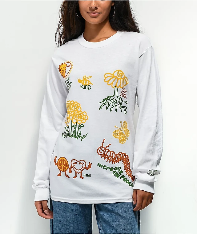 Petals by and Peacocks Choose Peace Mushroom Tan Long Sleeve T-Shirt