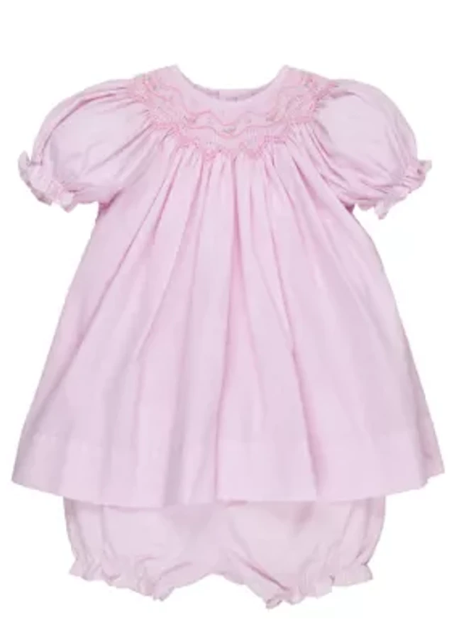 Petit Ami Baby Girls Short Sleeve Dotted Smocking & Matching Bloomers Dress Set