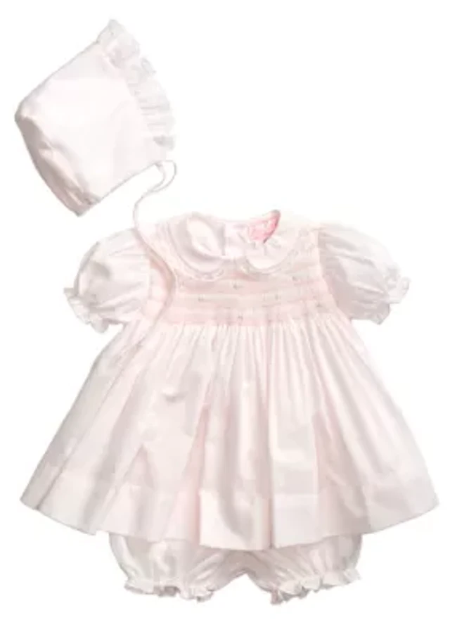 Petit Ami Baby Girls Preemie-Newborn Smocked Dress & Bonnet