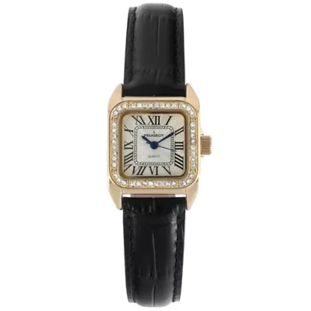 Peugeot Women's 34x24mm Tank Watch with Crystal Bezel Leather Strap