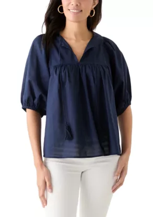 Plus Short Raglan Sleeve Peasant Woven Blouse