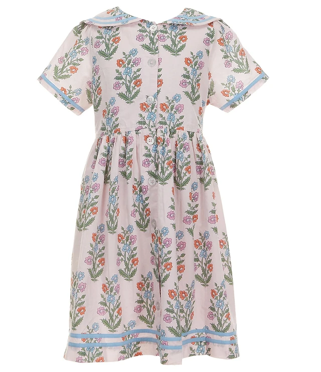 Pink Chicken Little Girls Elowen Sailor Floral Print Peter Pan Collar Short Sleeve Glitter Button Front Dress
