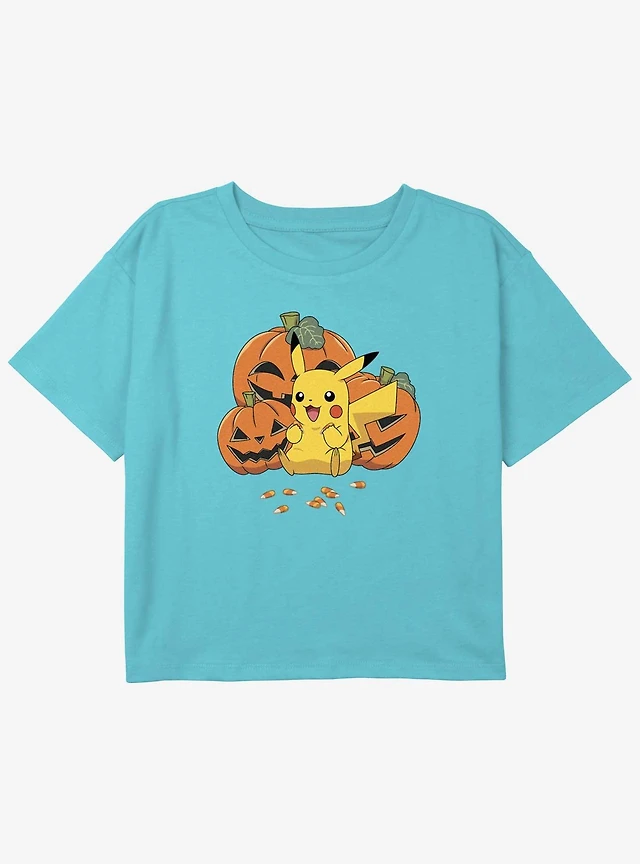 Pokemon Pikachu Pumpkin Girls Youth Crop T-Shirt