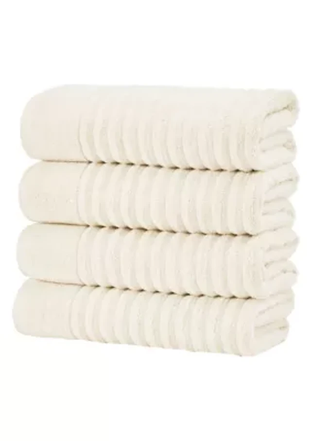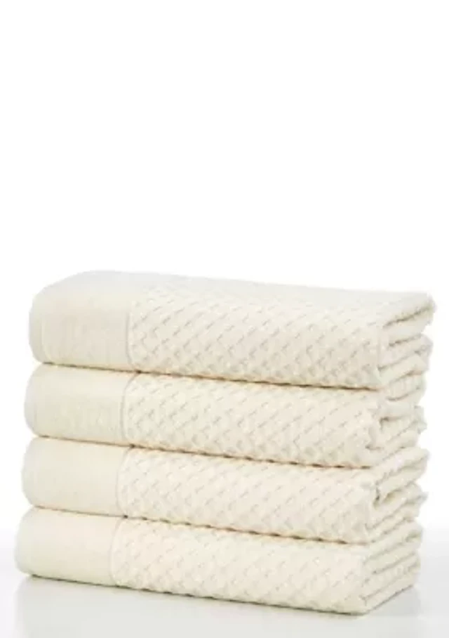 Cotton and Linen-Texture Border 4 Pack Bath Towel Set