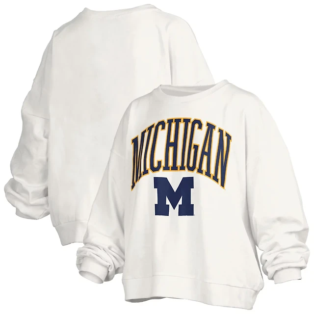 Pressbox Michigan Wolverines Janise Arch Over Logo Waist Length Oversized Pullover Sweatshirt