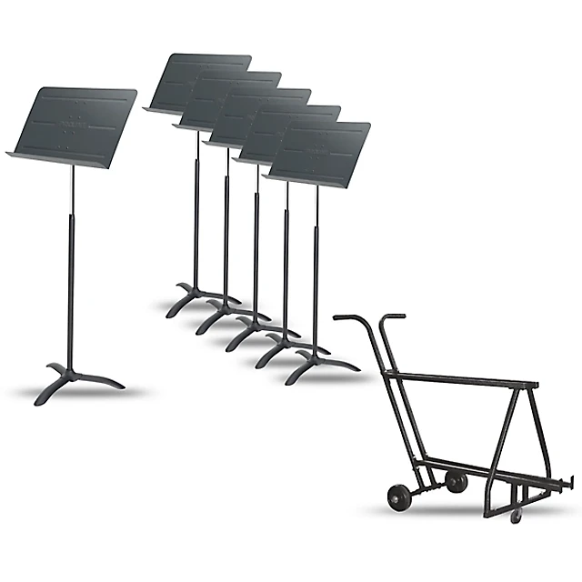 Proline 6-Pack Professional Orchestral Music Stand With Manhasset Music Stand Short Storage Cart (Holds 12-13)