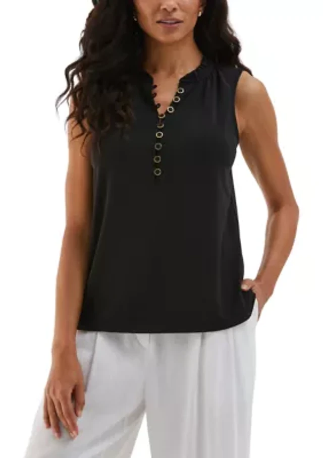 Petite Ribbed V-Neck Sleeveless Polo Shirt