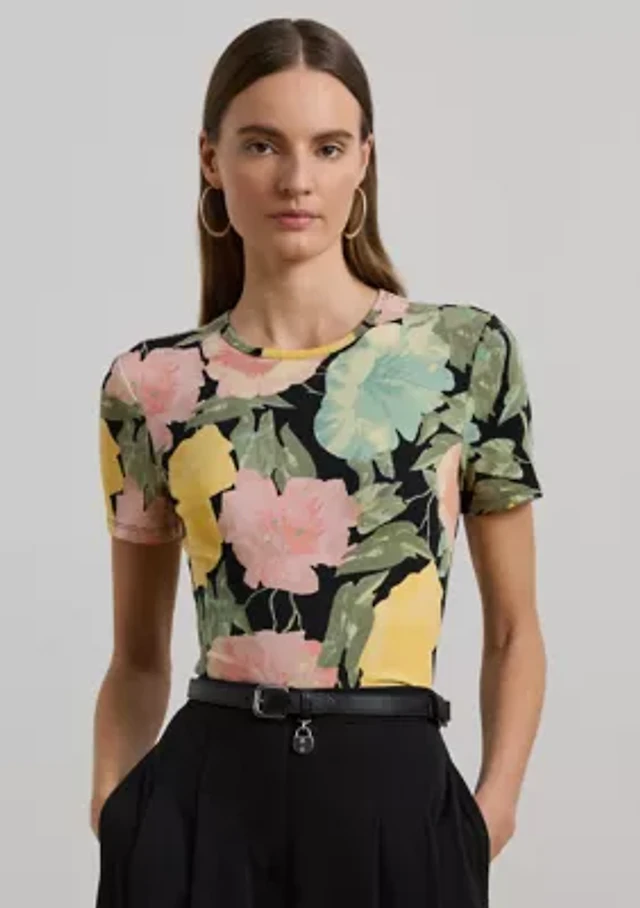 Petite Print Stretch Cotton Boatneck Top