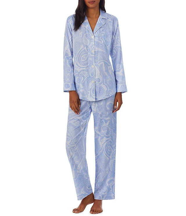 Lauren Ralph Lauren Paisley Print Long Sleeve Notch Collar Woven Pajama Set
