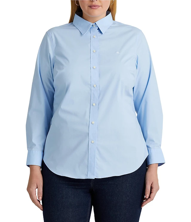 Lauren Ralph Lauren Petite Size Easy Care Point Collar Long Sleeve Shirt