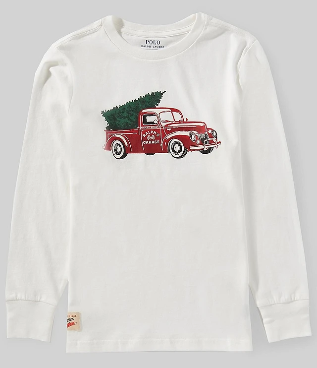 Polo Ralph Lauren Big Boys Long-Sleeve Christmas Truck Print T-Shirt