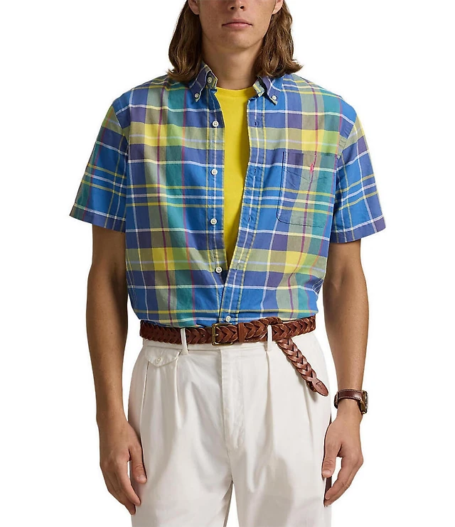 Polo Ralph Lauren Classic Fit Multi-Color Plaid Oxford Short Sleeve Woven Shirt