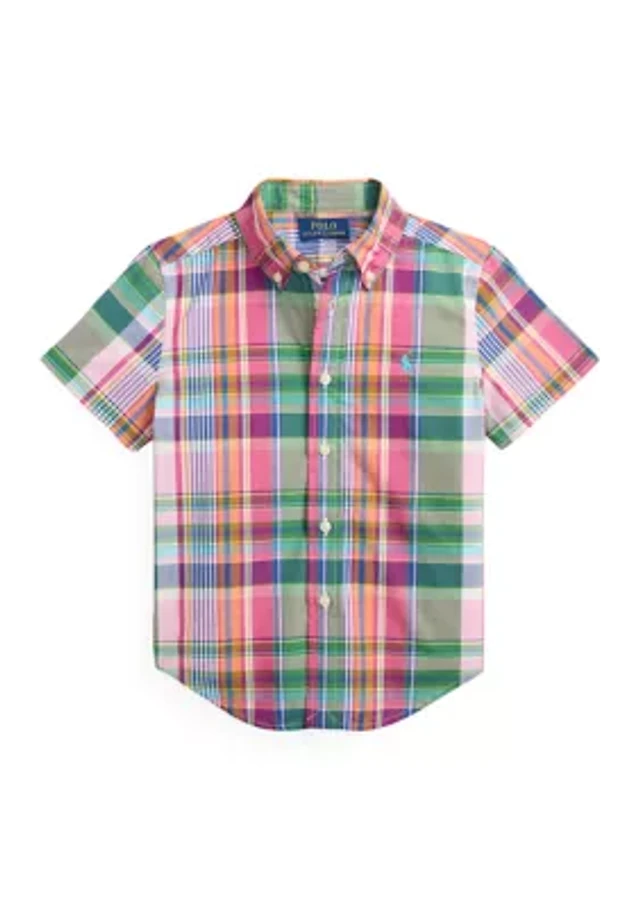 Boys 2-7 Plaid Cotton Poplin Short-Sleeve Shirt