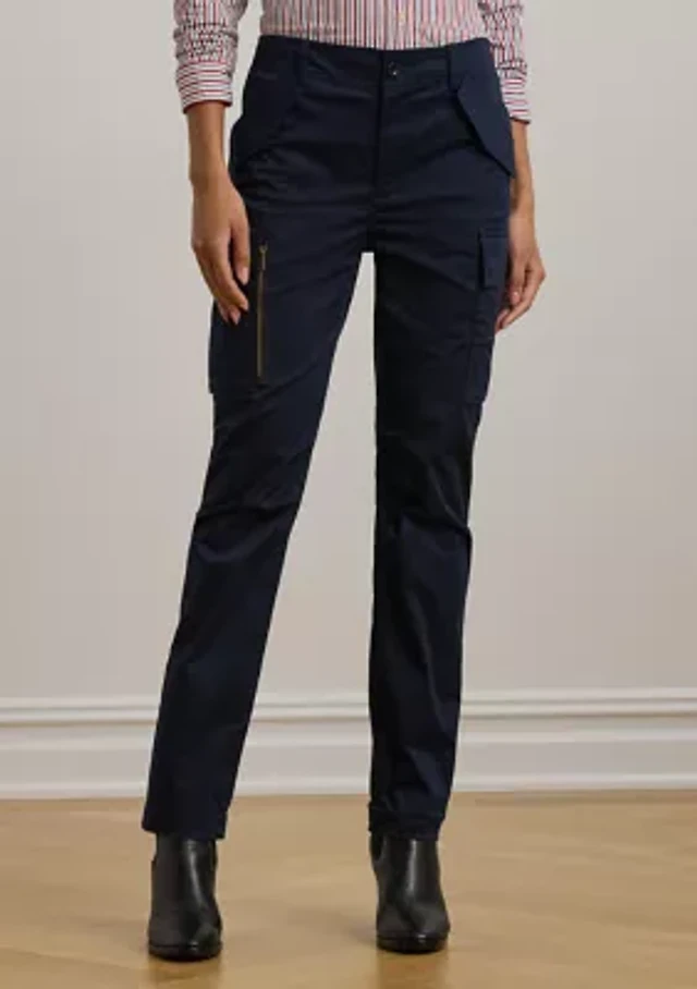 Petite Pleated Cotton Twill Wide Leg Cargo Pants
