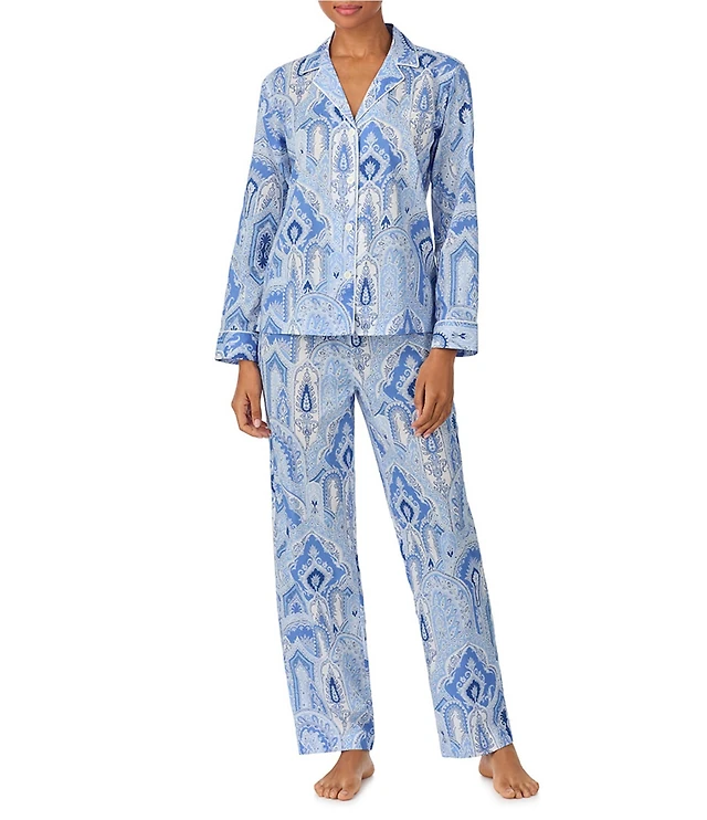 Lauren Ralph Lauren Woven Lawn Paisley Print Long Sleeve Notch Collar Long Pajama Set