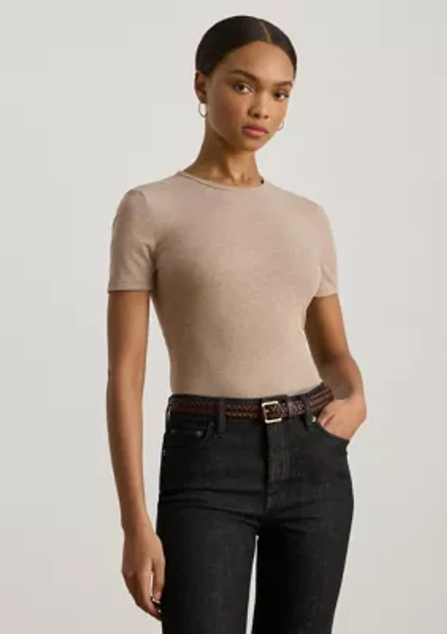 Petite Belting-Motif Short-Sleeve Sweater