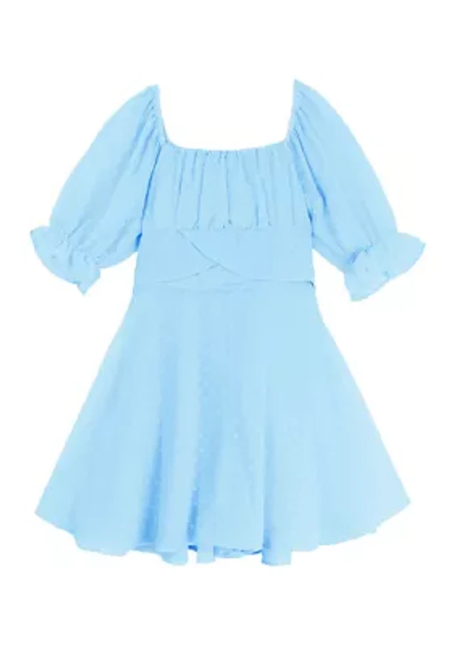 Girls 7-16 Flower Eyelet Scalloped Hem Dress