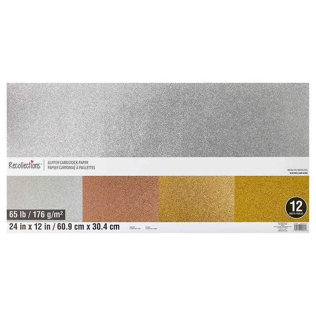 12" x 24" Glitter Neutral 65lb. Cardstock Paper by Recollections™, 12 Sheets