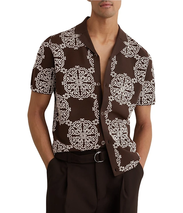 Reiss Mosaic Print Short Sleeve Woven Shirt