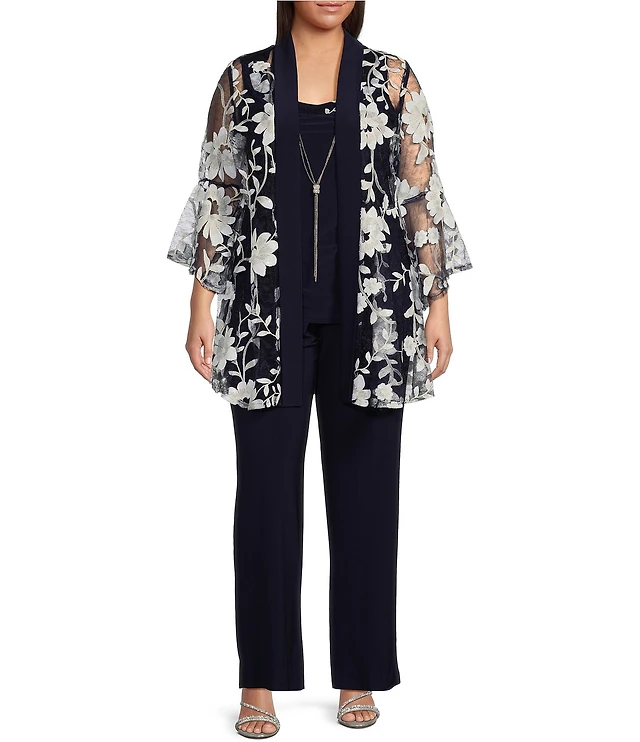 Plus 3-Piece Scallop Lace Duster Pant Set