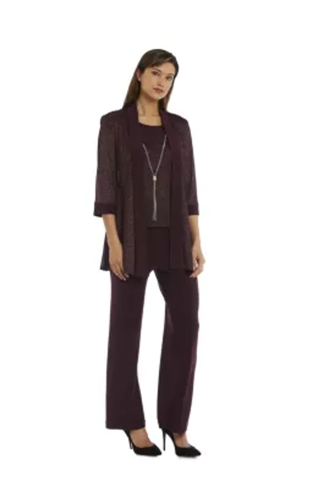 R & M Richards Festival Hologram Sequin 3-Piece Duster Pant Set