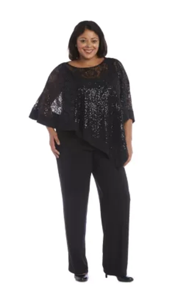 Plus 2Pc Mock Poncho with Attached Tank Over Pants