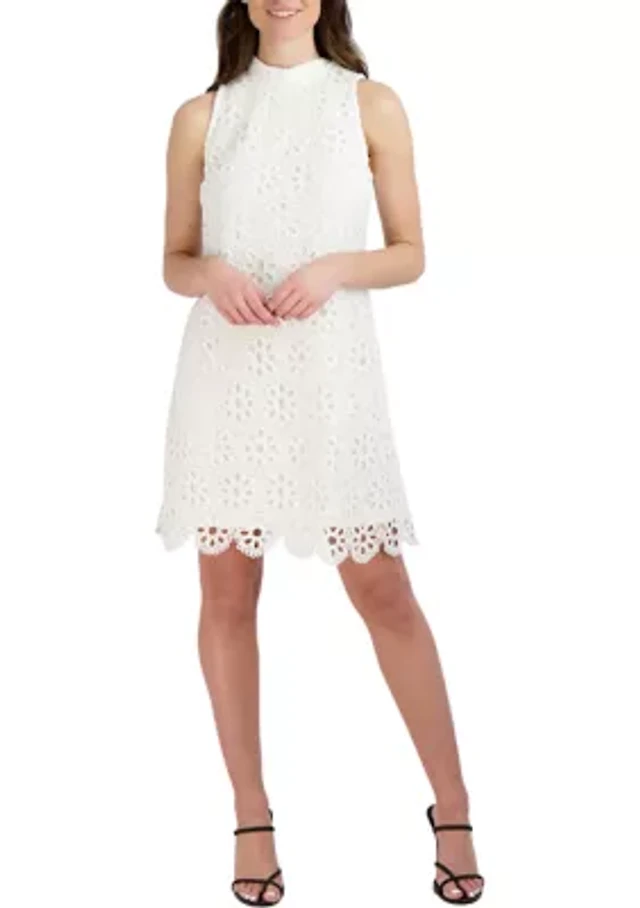 Women's Sleeveless Daisy Lace Mock Neck Dress