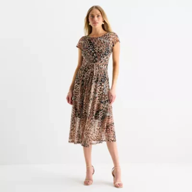 Robbie Bee Womens Sleeveless Floral Midi Fit + Flare Dress