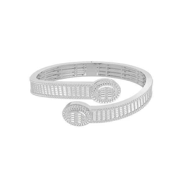 10K White Gold Tw Baguette Bangle Bracelet 5-1/2 Cttw
