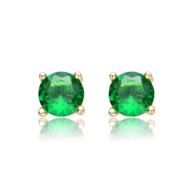 Lab Created 14K Gold Plated with Colored Cubic Zirconia Stud Earrings for Kids