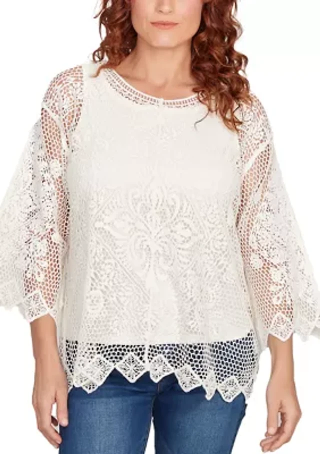 Petite Lined Medallion Crochet Top